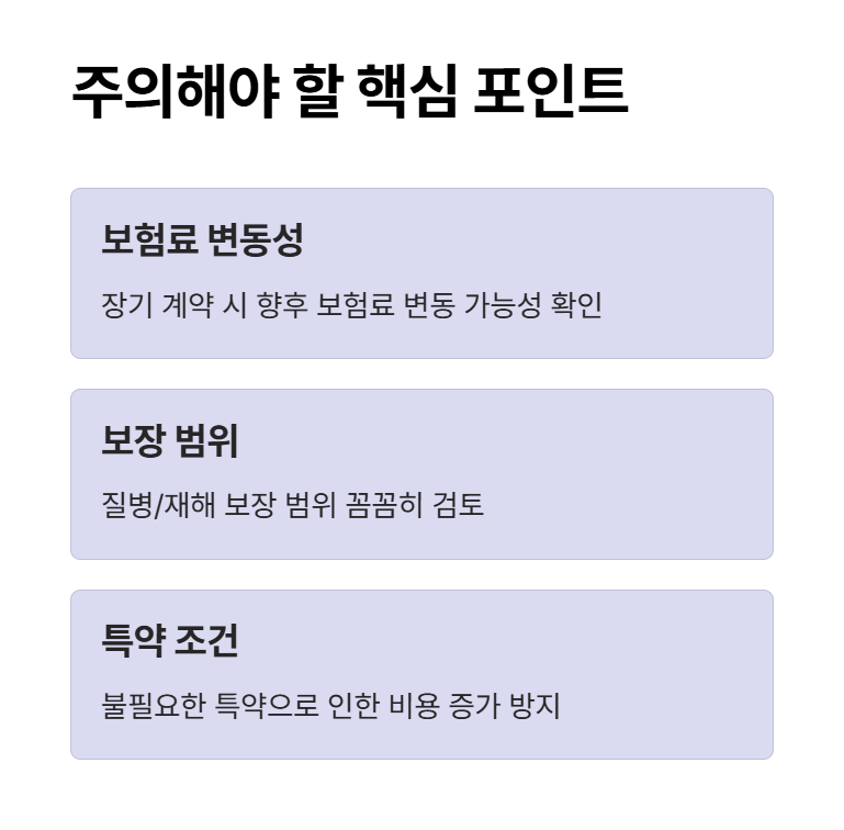 | 선택 가이드 | 보장 내용, 보험료, 환급률 비교 | 전문가와 상담 권장 |