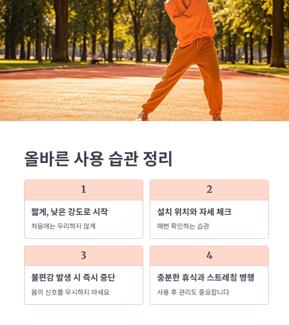- 사용 후에는 충분한 휴식과 스트레칭 병행