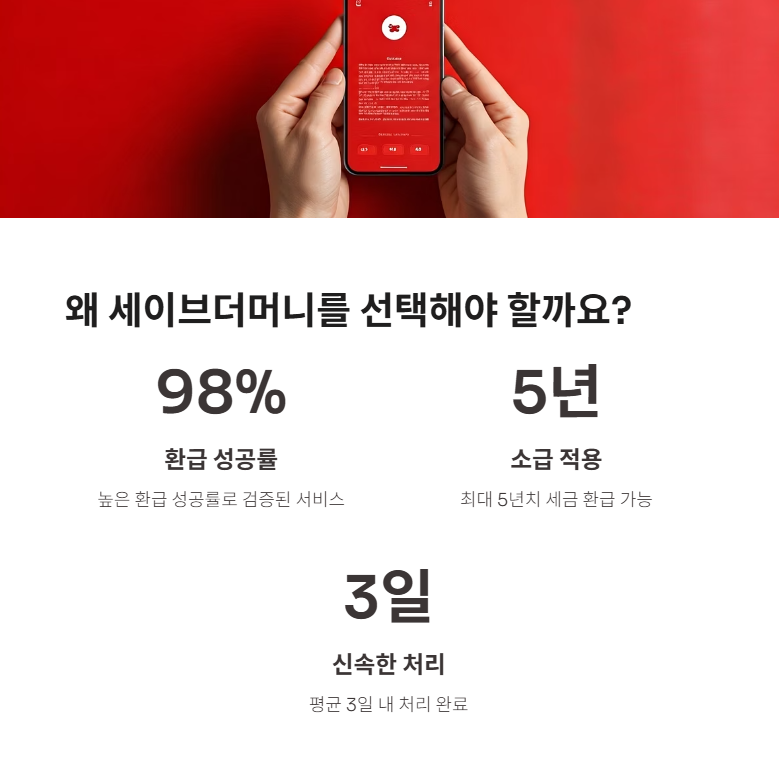 세이브더머니 경정청구 서비스와 함께라면 숨어있는 세금 환급금을 쉽고 빠르게 찾아낼 수 있습니다!