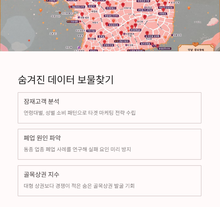 복잡한 상권 데이터를 한눈에 파악하고, 내 가게 성공의 발판을 마련하는 방법을 소개합니다.
