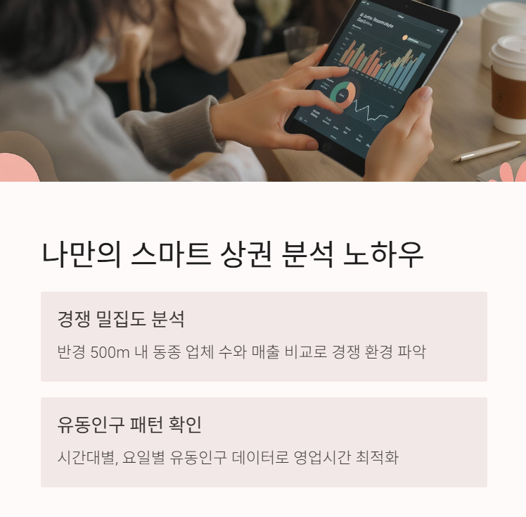 시간대별 유동인구, "주 고객층" 등을 직접 확인해야 해요.