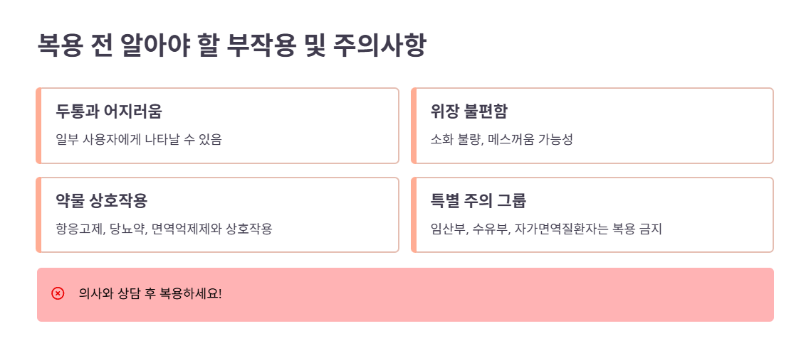 자가면역질환, 혈액 응고 장애가 있거나 특정 약물을 복용 중이라면 반드시 전문가와 상담해야 합니다.