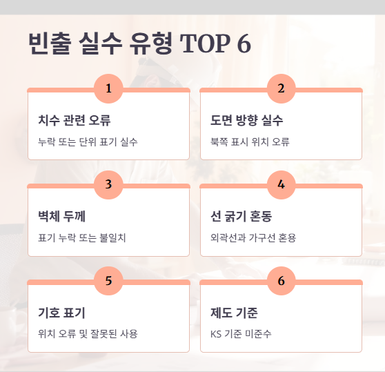 실내건축기사 실기 시험에서는 도면 구성 능력 자체보다 실수로 인한 감점이 더 많다는 점에 주의해야 합니다.