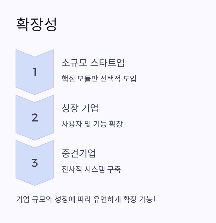 | 단점 | 커스터마이징 한계, 대규모 복잡성 | 기업 특수성 반영 여부 |