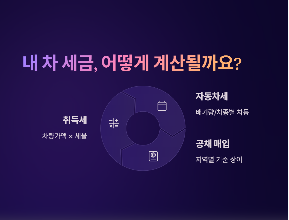 자동차를 구매하고 운행하는 과정에서 다양한 종류의 "세금"을 납부하게 됩니다.
