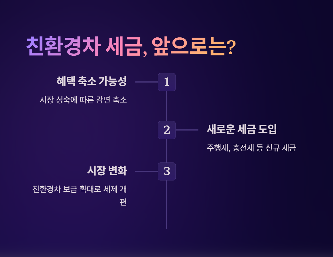 친환경차 보급률이 높아짐에 따라 "정부의 세금 혜택"이 점차 축소될 수 있습니다.