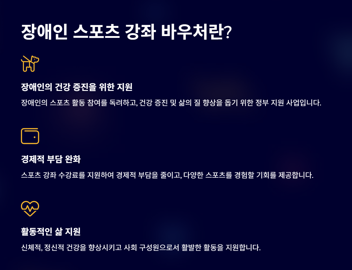 ※ 본 글은 장애인 스포츠 강좌 바우처에 대한 일반적인 정보를 바탕으로 작성되었으며, 정책은 매년 변경될 수 있으니 최신 공고를 반드시 확인해 주세요.