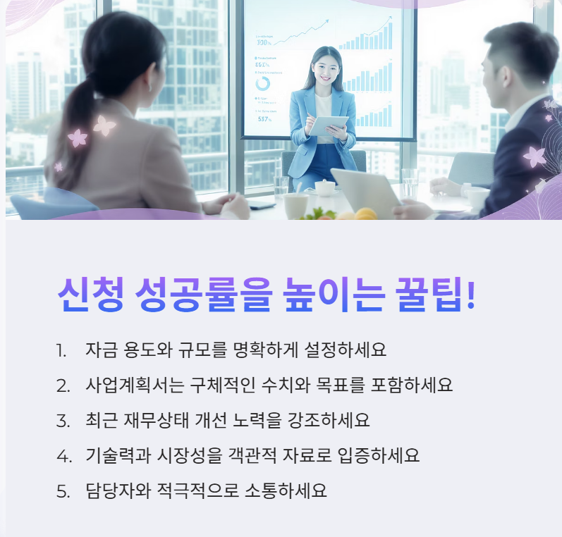 | 신청 자격 | 업력, 기술력, 매출 등 다양 | 기업 조건에 맞는 자금 선택 |