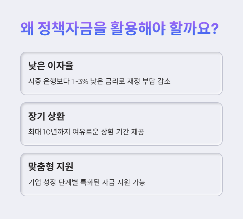 정책자금은 이러한 "재정적 어려움을 해결"하고 기업을 안정시키는 데 큰 도움이 돼요.