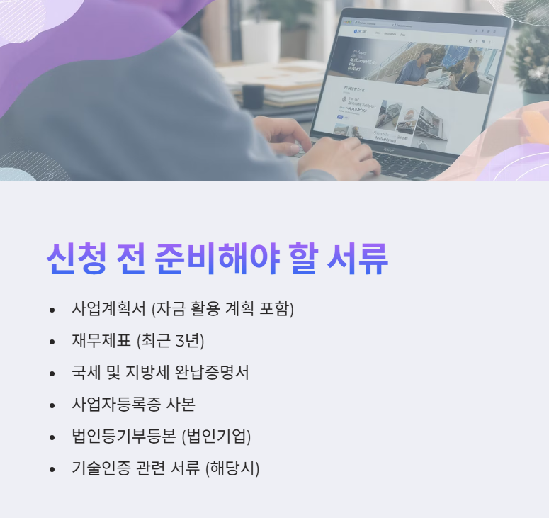 사업자등록증, 법인등기부등본, 재무제표, 각종 인증서 등 "누락 없이" 준비하세요.