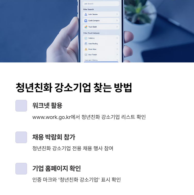 취업을 준비할 때 "청년친화 강소기업 리스트"를 참고할 수 있습니다.