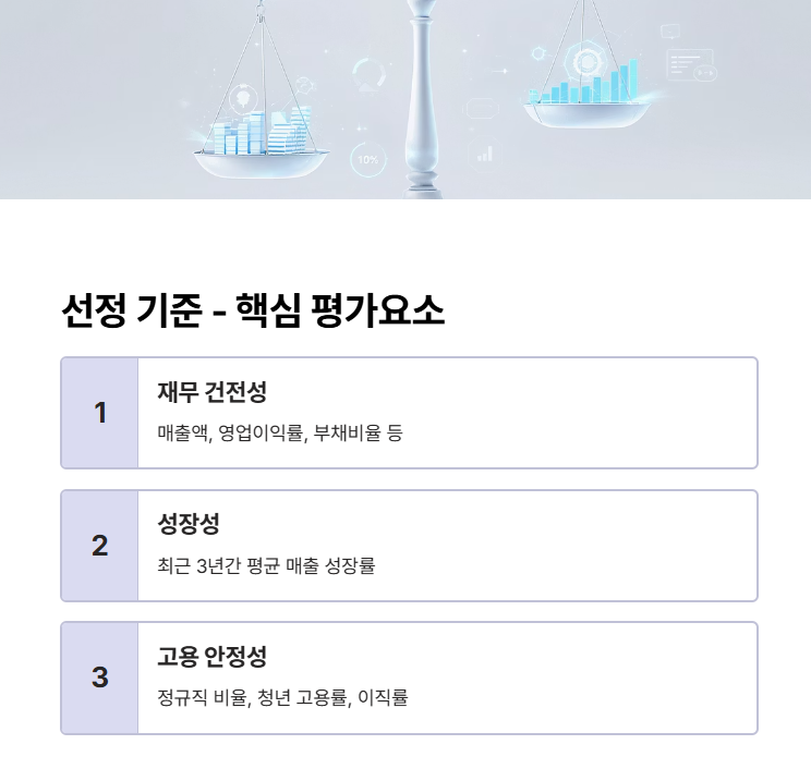 | 선정 기준 | 임금, 고용 안정성, 근무 환경 | 세부 기준 충족 기업 대상 |