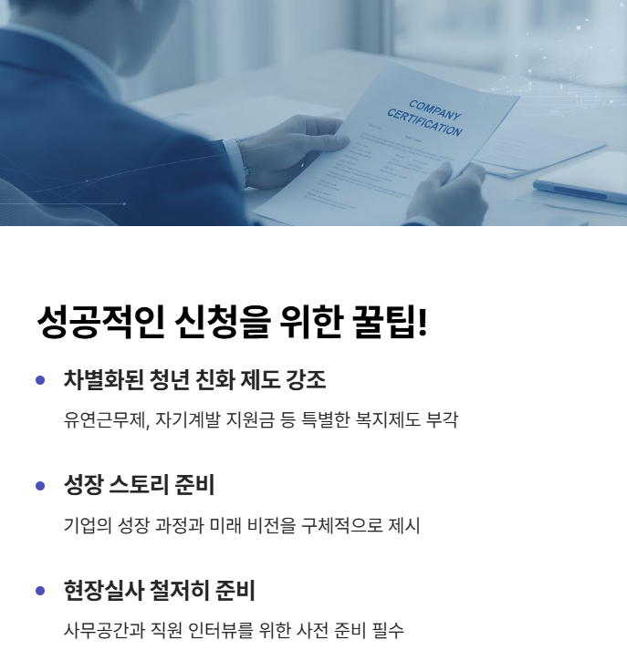 ※ 본 글은 청년친화 강소기업 선정에 대한 일반적인 정보를 제공합니다. 자세한 신청 요건 및 절차는 고용노동부 워크넷 공식 공고를 통해 반드시 확인하시기 바랍니다.