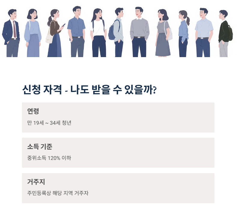 | 지원 대상 | 특정 연령대 청년 | 지역별, 기관별 기준 상이 |