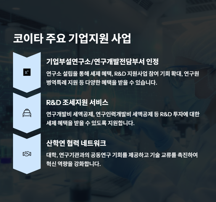 ※ 본 글은 일반적인 정보를 제공하며, 지원 내용은 정책 변경 및 기업 상황에 따라 달라질 수 있습니다. 정확한 정보는 코이타 공식 홈페이지 또는 담당 부서에 문의하세요.