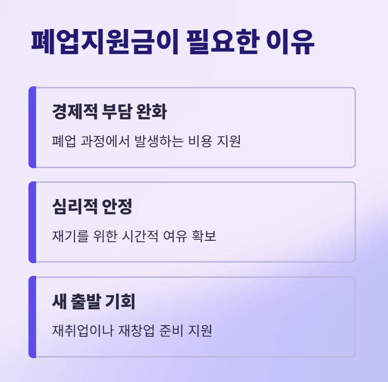 폐업지원금은 "자영업자의 재기"를 돕는 중요한 제도예요.