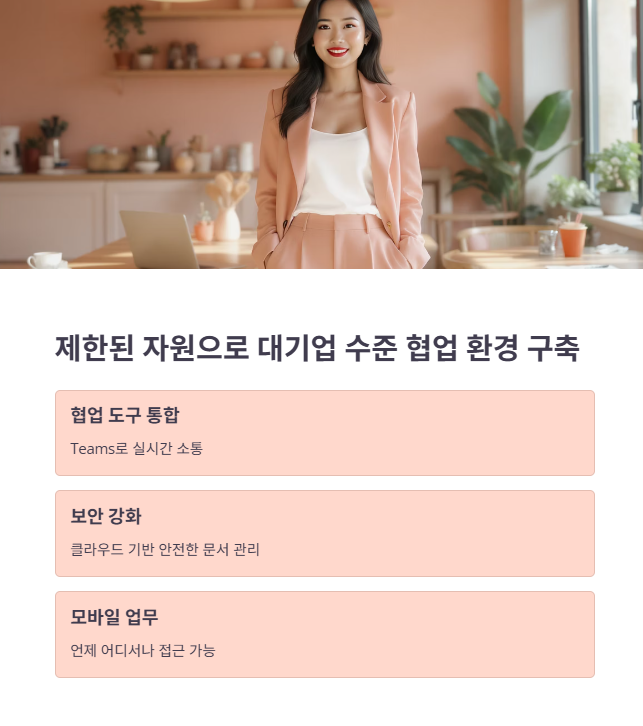 M365는 중소기업이 대기업과 동등한 수준의 인프라를 갖출 수 있게 돕는 핵심 도구입니다.