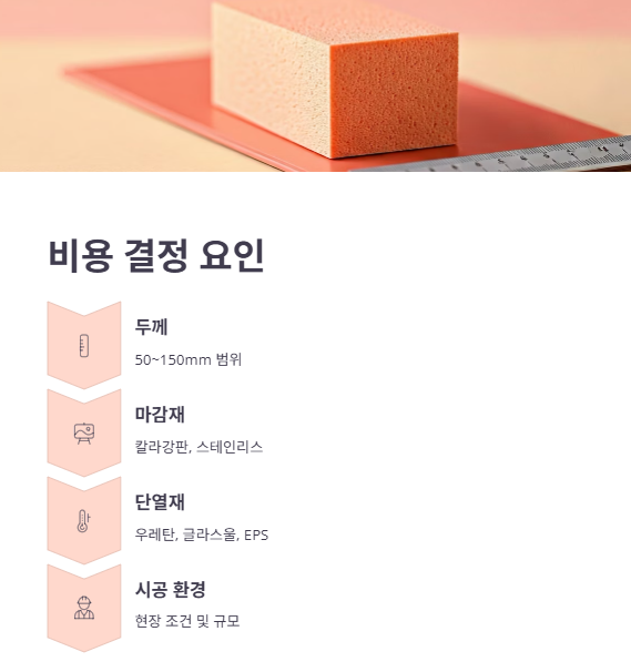 - 우레탄 SGP판넬: 약 70,000~95,000원/㎡